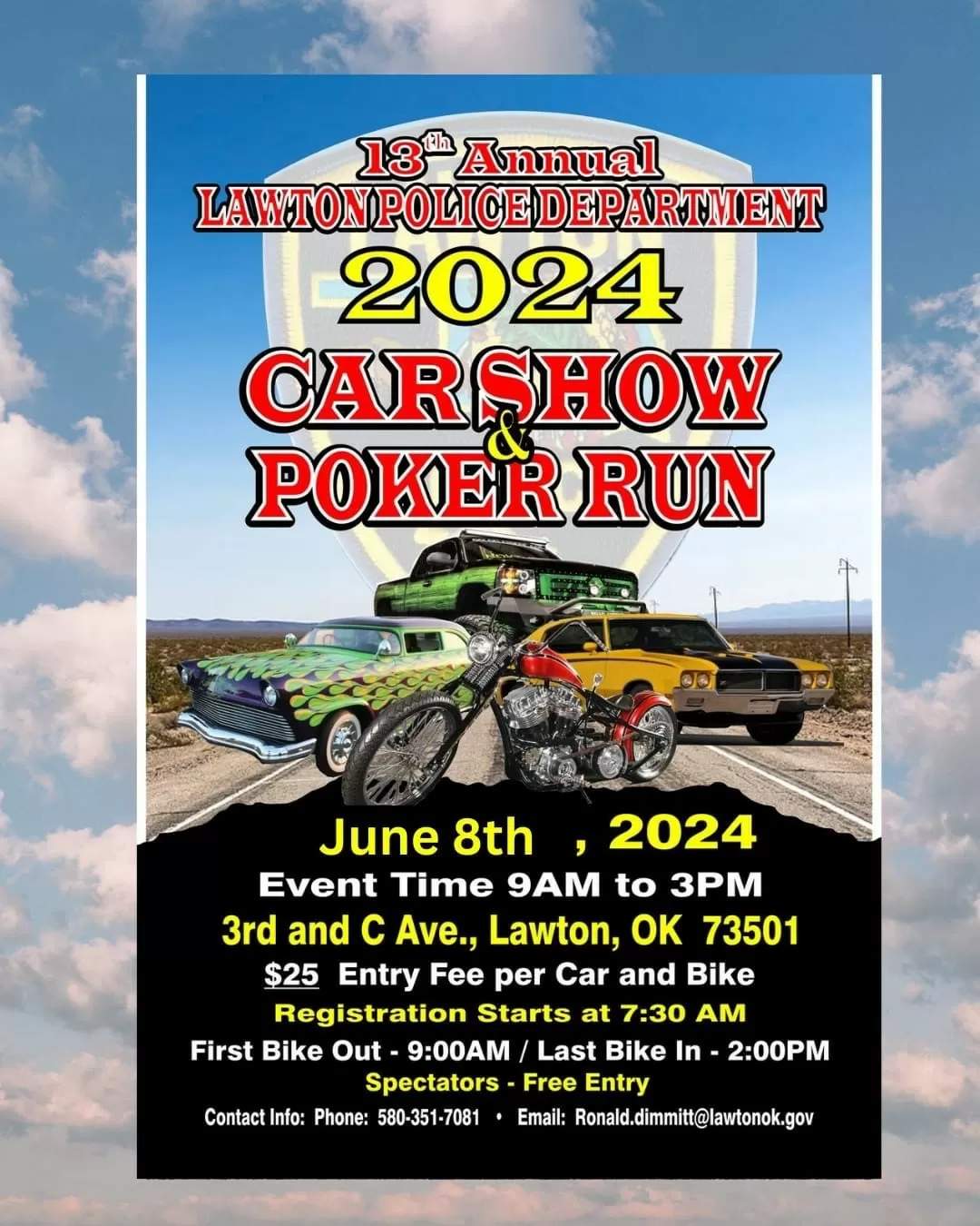 Sgt Dimmitt with Lawton Police Department joined Live with Indie and Big Al this morning! Get info about the upcoming 13th Annual Lawton Police Department Car Show and Poker Run - so many free activities and a car show by Sweet Temptationz. Where? When? Click link for interview.