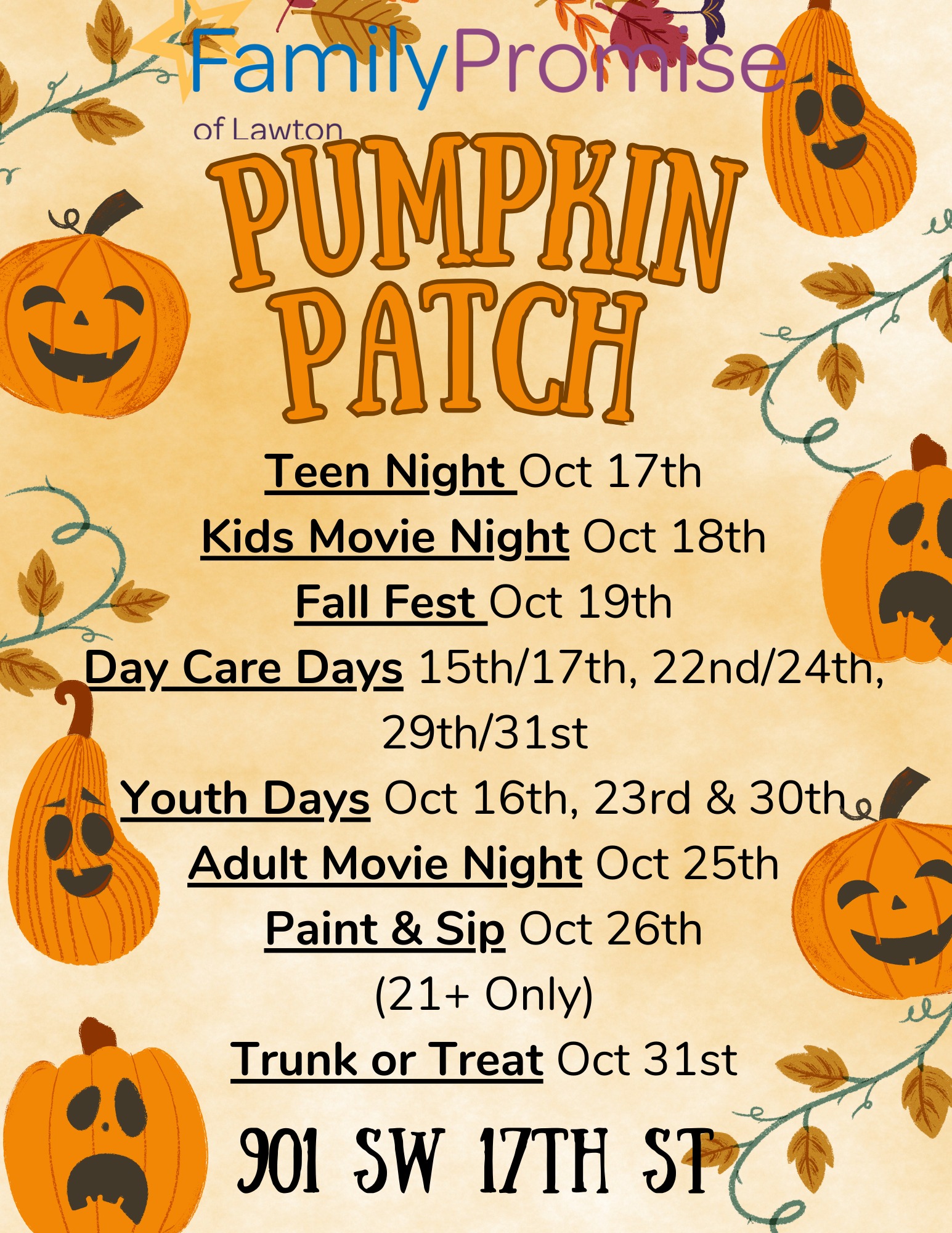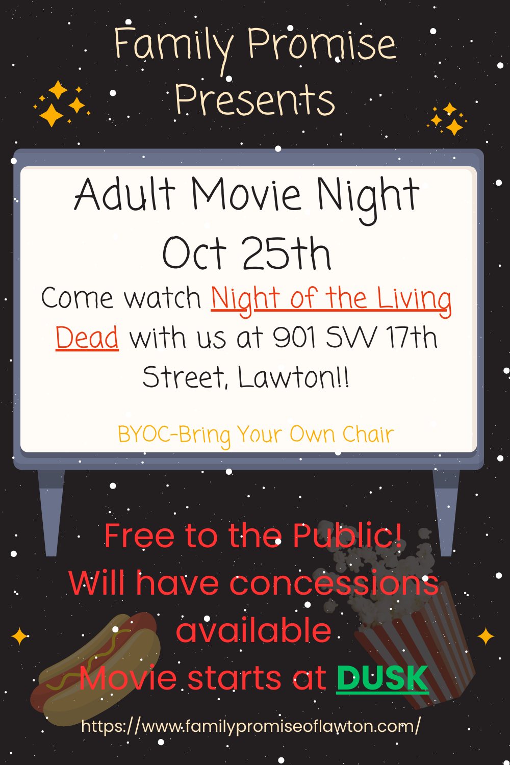 Alicia Ross with Family Promise of Lawton shared some exciting events coming up for the entire family this month. The organization welcomes everyone in the community to take part for movie nights, daycare days, pumpkin painting and more. Click the link below for interview which has info about the organization, their mission and how you can help with donations. Take a listen below and check out event flyers.